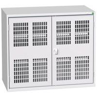 Svetsad stålplåtskonstruktion. Förstärkta dörrar med 3-punktslåsning. Ventilerade dörrar för god ventilation och överblick över innehållet. Hyllor i galvaniserat stål, justerbara i steg om 25 mm. Bärbarhet per hyllplan 60 kg. Säkerhetsråd: installera möbeln på en plan yta, fäst den på en vägg eller skiljevägg med lämpliga fästelement, var noga med att inte överskrida den maximala rekommenderade belastningen och se till att den är väl fördelad. Gjord i UK Maximal last (kg) : 1000 Maximal vikt per hyllplan (kg) : 75
