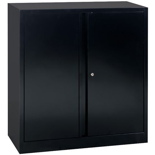 - Du låser förvaringsskåpet med slagdörrar lätt med hjälp av handtaget med inbyggt lås.