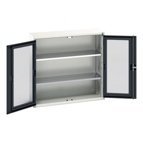 Verso skåp med transparenta dörrar. Med 2 hyllplan. 1050x350x1000. Tillverkad i Storbritannien Maximal last (kg) : 1000 Maximal vikt per hyllplan (kg) : 75