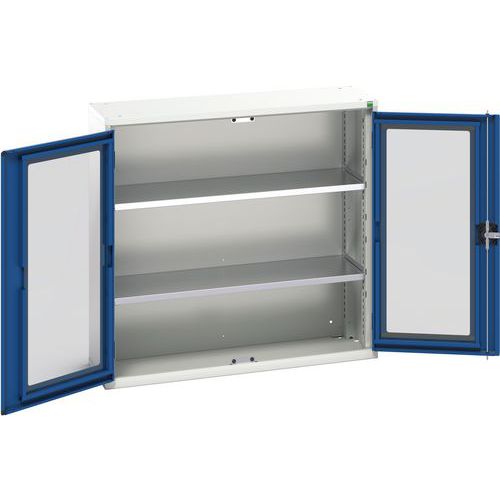 Verso skåp med transparenta dörrar. Med 2 hyllplan. 1050x350x1000. Gjord i UK Maximal last (kg) : 1000 Maximal vikt per hyllplan (kg) : 75