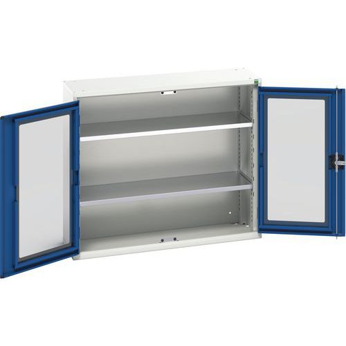 Verso skåp med transparenta dörrar. Med 2 hyllplan. 1050x350x900. Gjord i UK Maximal last (kg) : 1000 Maximal vikt per hyllplan (kg) : 75
