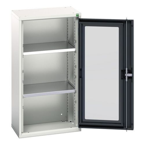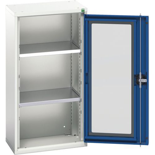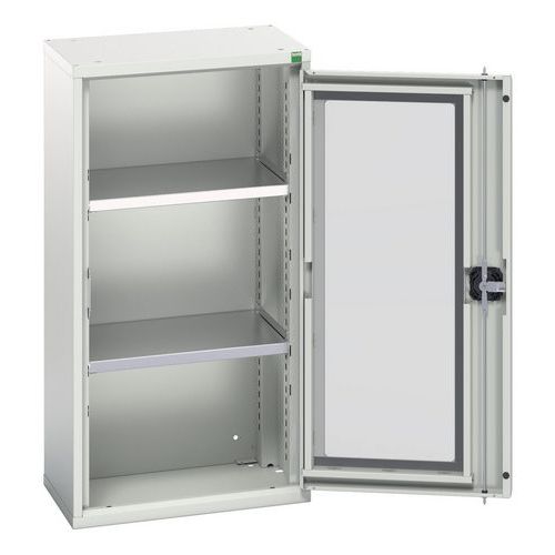 Verso skåp med transparenta dörrar. Med 2 hyllplan. 525x350x1000. Tillverkad i Storbritannien Maximal last (kg) : 1000 Maximal vikt per hyllplan (kg) : 75