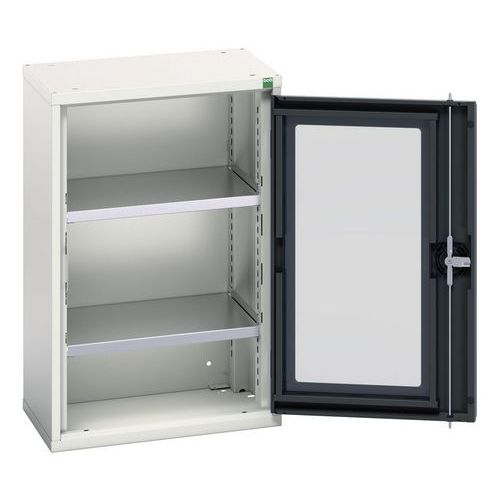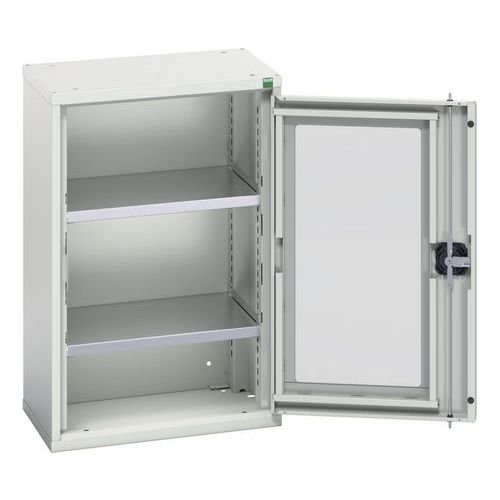 Verso skåp med transparenta dörrar. Med 2 hyllplan. 525x350x800. Tillverkad i Storbritannien Maximal last (kg) : 1000 Maximal vikt per hyllplan (kg) : 75