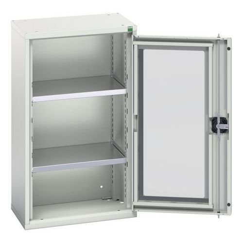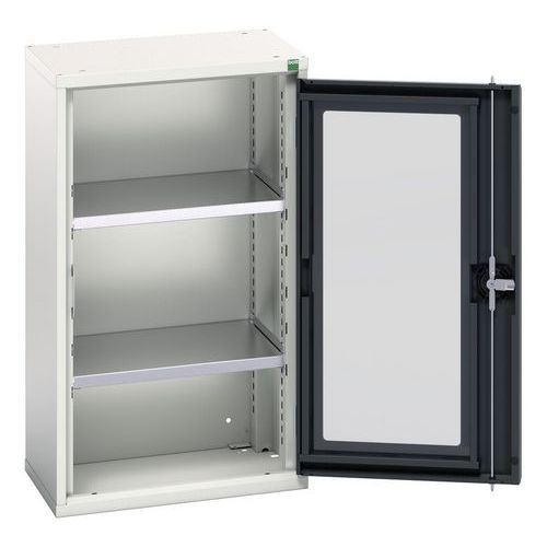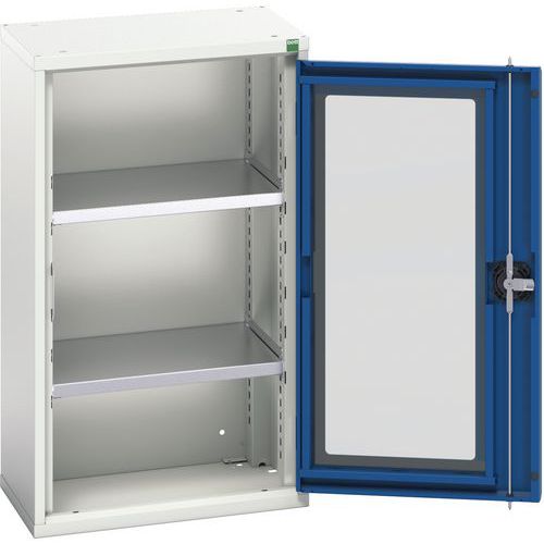 Verso skåp med transparenta dörrar. Med 2 hyllplan. 525x350x900. Tillverkad i Storbritannien Maximal last (kg) : 1000 Maximal vikt per hyllplan (kg) : 75