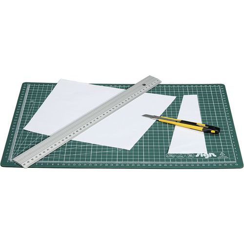 Multifunktionell, giftfri skärmatta tillverkad av DEHP-fritt material. Tre lager av olika texturer: två TPE-lager (yttre) och ett PP-lager (mitten). Högkvalitativ återställande yta: när ett blad sätts in i gummit kommer det ut utan att lämna ett märke. Gör det exakt och mycket enkelt att skära med ett rutnät på 5 x 5 cm och förritade vinklar.