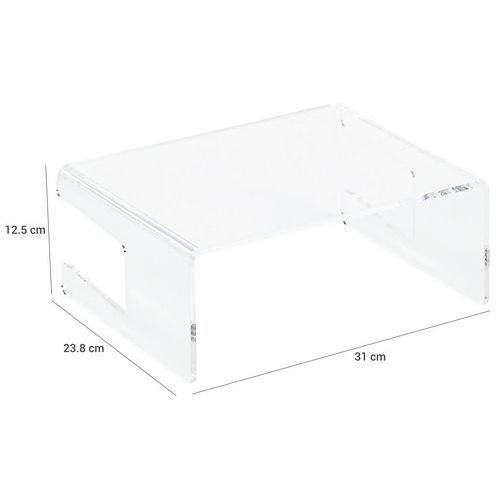 | Varunamn | Skärmstöd i akryl, Maximal last: 8 kg, Färg: Transparent, Total höjd: 12.5 cm, Total bredd: 31 cm |