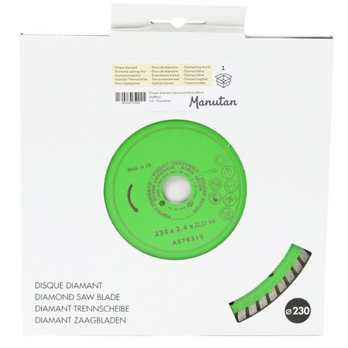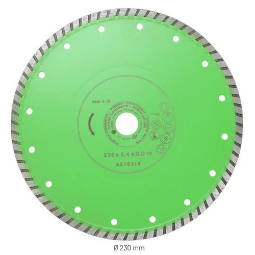 Skärskiva för betong, Axelhål: 22.23 mm, Diameter Ø: 230 mm, För material: Pierre, béton, Användning: Kapa