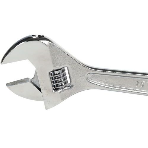 - Justerbar skiftnyckel i kromvanadinstål med smalt huvud vinklat 15°. Käkspärrsystemet sticker inte ut.