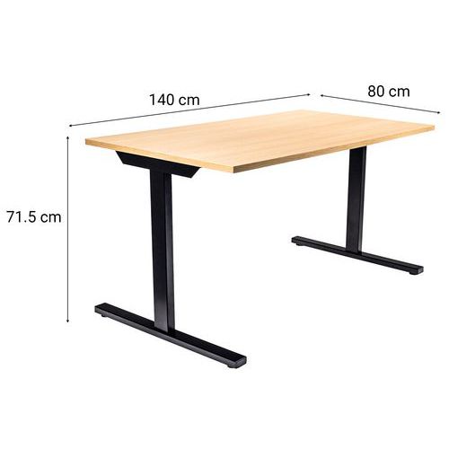Rakt 140x80 cm-skrivbord med T-formade ben. Klassisk design - finns i flera olika färgkombinationer för att passa in alla slags kontor/miljöer. Melamin-bänkskivan är 25 mm tjock med en 2 mm ABS-kant. Metallben: 796x60x30 mm.