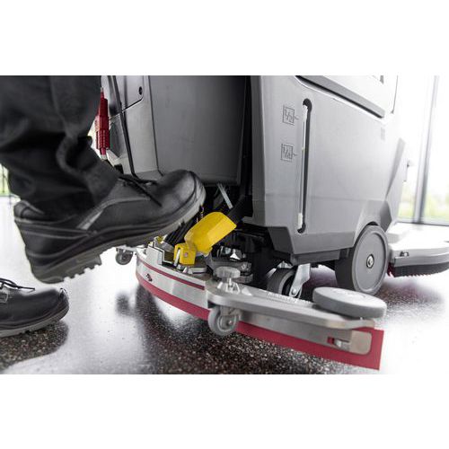 - Den är utrustad med ett 51 cm plandisk skurhuvud och 55 liters tankar för rent och smutsigt vatten.