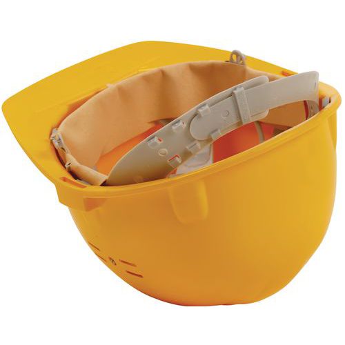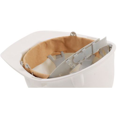 - Justerbar skyddshjälm i HD PE behandlad med UV-skydd.