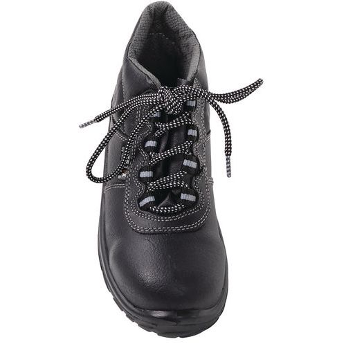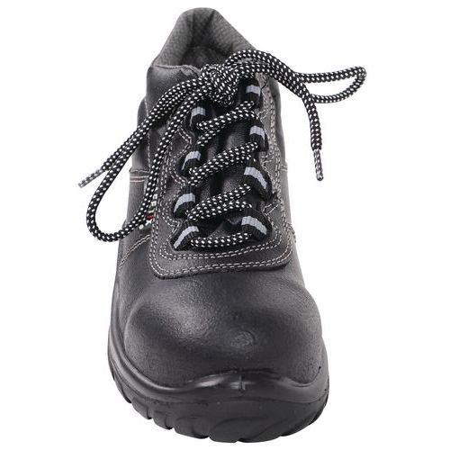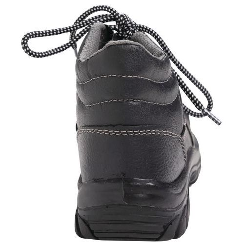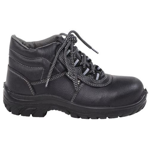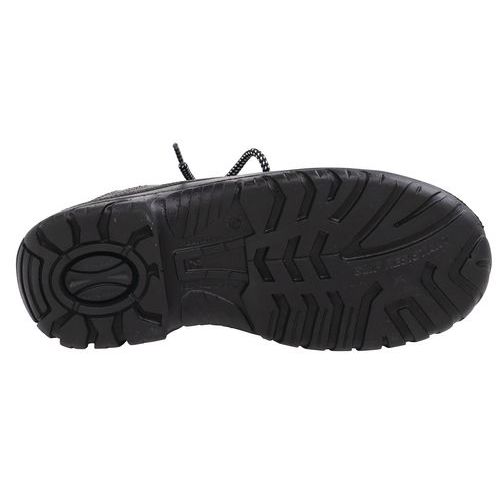 Hög skyddssko med skyddande tåhätta i polykarbonat och sula med halkskydd Ovandel i narvat läder tjocklek 2–0–2,2 mm för ökad mekanisk motståndskraft och hållbarhet Idealisk för industrigolv och industrimiljöer Lätt och smidig sula, injicerad med PU2D, halkhämmande tack vare en öppen struktur med dubbar för bättre evakuering av vätskor Löstagbar häldel för ökad säkerhet, särskilt på stegar