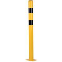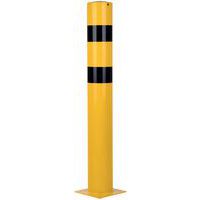 Kraftig skyddsstolpe av stål som används för att skydda utrustning eller maskiner från eventuella stötar från hanteringsutrustning. Bra synlighet tack vare sin tvåfärgade gul/svarta färg. Lämplig för både inomhus- och utomhusbruk. Fäst i marken med sina 4-håls Ø 12,5 mm plattor. TÜV-certifikat.