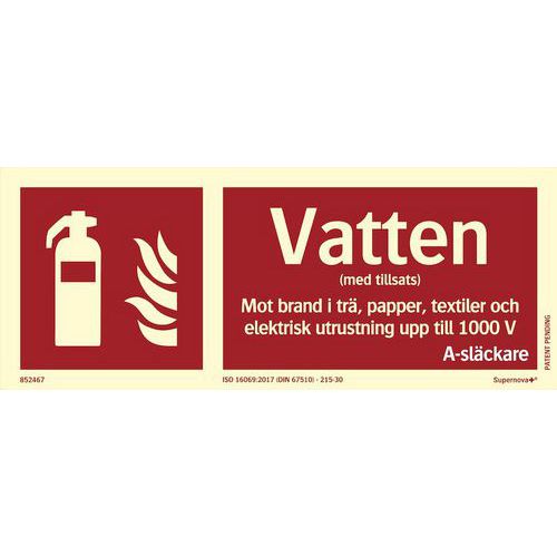 | Varunamn | Skylt Supernova+® vattensläckare, Material: Aluminium, Skylt, form: Kvadrant, Typ av skylt: Brandsäkerhet |