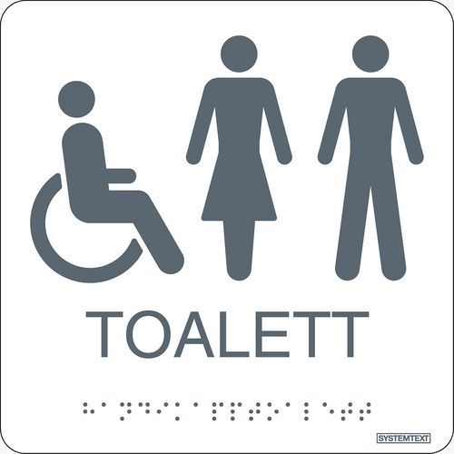 | Varunamn | Skylt Taktil toalett rullstol/dam/herr vit, Skylt, form: Kvadrant, Typ av skylt: Information, Längd: 150 mm |