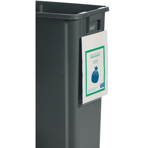 | Varunamn | Skylt till avfallssorteringskärl, Färg: Transparent, Material: PVC, Material: Plast |