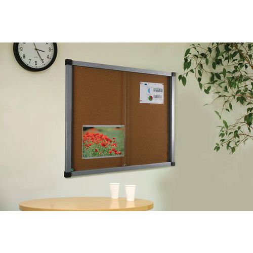 - Kork- eller magnetisk botten. Ram i aluminium samt hörn i plast. 4 mm säkerhetsglas. Upphängninssats medföljer. Levereras med 2 nycklar.
