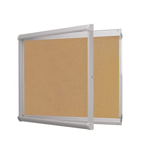 Ram av natureloxerad aluminium med rundade hör n av ABS-plast. Dörr med 3 mm plexiglas. Kork. Skruvsats för upphängning medföljer.