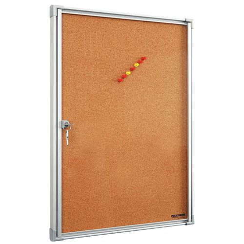 Dekorativt skyltskåp i miniformat för 1-6 A4-sidor. Ram i anodiserad aluminium med plasthörn. Dörr i plexiglas och med säkerhetslås. Med bakvägg i kork. Liten miljöpåverkan.