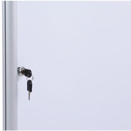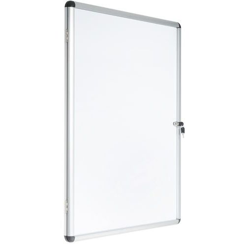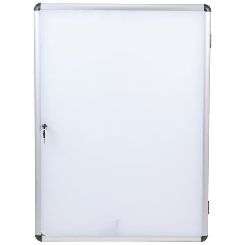 Låsbart skyltskåp med magnetbotten för väggmontering. Perfekt inomhus som anslagstavla eller i entréer/receptioner. Finns i flera storlekar. Ram i återvunnet aluminium med akrylglas. Levereras med 2 nycklar.