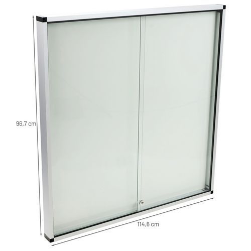 Låsbart skyltskåp med magnetbotten för väggmontering. Informationstavla med 2 dörrar för inomhusbruk. Robust, säker och lätt konstruktion. Magnetyta i lackerat stål. Akrylglas gör att det visade materialet syns fantastiskt bra. Ram i aluminium. 100 % återvunnet och återvinningsbart material. Levereras med 2 nycklar. Tillverkad i EU Garanti : 10 år