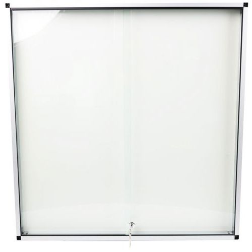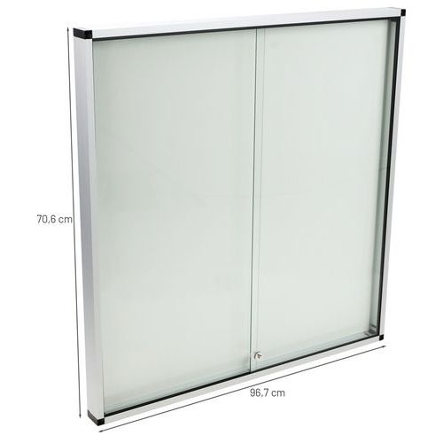 Låsbart skyltskåp med magnetbotten för väggmontering. Informationstavla med 2 dörrar för inomhusbruk. Robust, säker och lätt konstruktion. Magnetyta i lackerat stål. Akrylglas gör att det visade materialet syns fantastiskt bra. Ram i aluminium. 100 % återvunnet och återvinningsbart material. Levereras med 2 nycklar. Tillverkad i EU Garanti : 10 år
