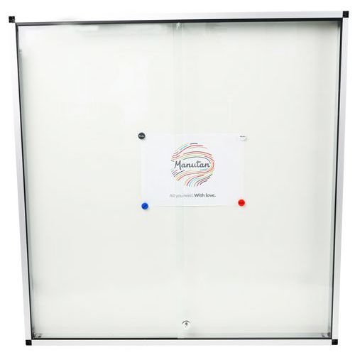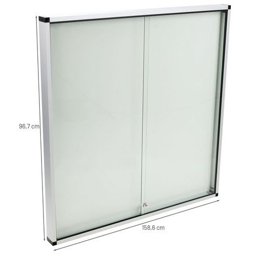 Låsbart skyltskåp med magnetbotten för väggmontering. Informationstavla med 2 dörrar för inomhusbruk. Robust, säker och lätt konstruktion. Magnetyta i lackerat stål. Akrylglas gör att det visade materialet syns fantastiskt bra. Ram i aluminium. 100 % återvunnet och återvinningsbart material. Levereras med 2 nycklar. Tillverkad i EU Garanti : 10 år