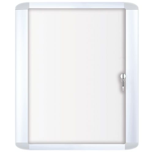 Skyltskåp med ram i anodiserad aluminium. Sidohängd dörr med låsbar glasruta och lås framtill. Magnetiskt bakstycke. Tillverkad i EU Garanti : 3 år
