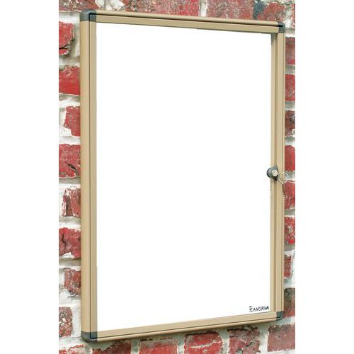 - Extra platt skyltskåp för inomhusbruk med ram i anodiserad aluminium och 3 mm tjock glas.
