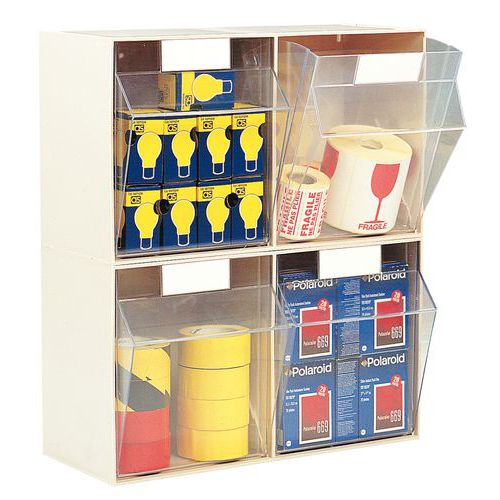 - Tillverkade av beigefärgad polystyren och innehåller genomskinliga backar av ABS.