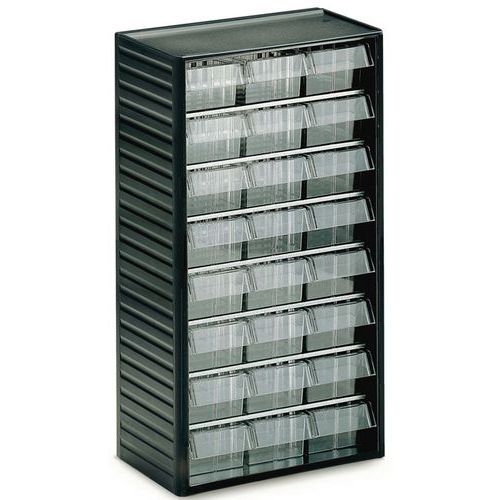Det är lätt att hålla ordning på små komponenter med dessa kvalitetskonstruerade smådelskassetter. En kassett har plats för upp till 60 olika glasklara lådor där det är lätt att komma åt även de minsta delarna. Den robusta stommen är tålig och kassettens genomtänkta design gör det lämpligt även för de mest krävande industrimiljöer och tekniska miljöer. Välj önskad smådelskassett och så många lådor du behöver. Smådelskassetten inkluderar stommen och de genomskinliga lådorna för smådelar med etiketter Två storlekar, många olika lådkombinationer att välja bland Kan placeras på ett bord, på väggen eller på en vagn, eller staplas i en karusellenhet På baksidan av kassetten finns hål för montering I genomskinliga backar med korrugerad botten är det lätt att hitta och plocka produkter Tvärgående och längsgående mellanväggar finns som tillbehör Det finns även modeller med ESD-skydd. Gjord i EU