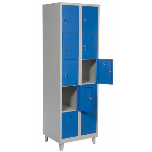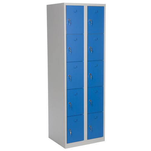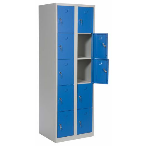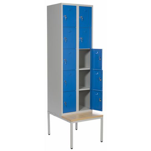 Ett flexibelt småfacksskåp i dubbelkonfiguration med 4-10 fack, perfekt för förvaring av personliga saker på arbetsplatser, skolor, kontor, butiker, idrottsanläggningar, sjukhus, vänthallar med mera.