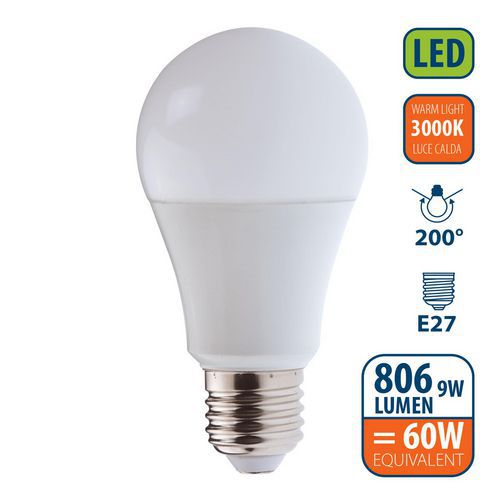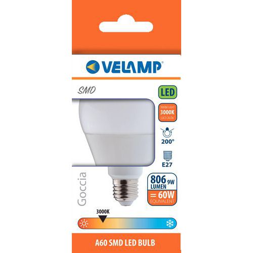 SMD LED-lampa, standard, A60, 9 W, E27-sockel – VELAMP