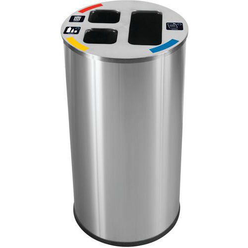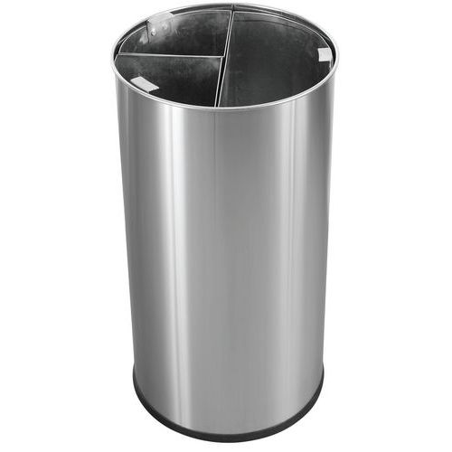 Sorteringskärl med 3 fack, Volym: 60 L, Öppning: Med pedal, Material: Rostfritt stål, Soptunna