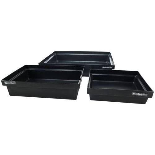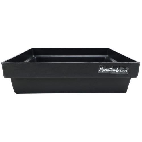 Spilltråg i återvunnen PEHD, Rutnät: nej, Retentionskapacitet: 10 L, Färg: Svart, Kapacitet (antal fat): 1 Spilltråg i återvunnen PEHD, Rutnät: nej, Retentionskapacitet: 10 L, Färg: Svart, Kapacitet (antal fat): 1