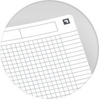 Den 5 mm lilla fyrkantiga linjalen har en rubrik för att enkelt identifiera innehållet genom att ange en titel och ett datum, samt dubbel marginal för att göra anteckningar.