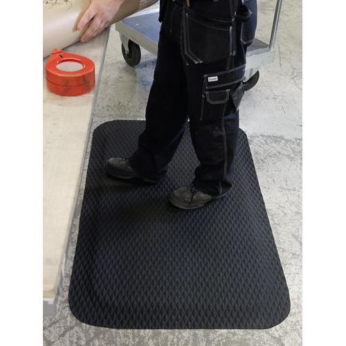 Ytskiktet är gjort av PET, vilket ger en mycket slitstark och smutstålig yta som är lätt att hålla ren, och undersidan av ståmattan består av mjukt och spänstigt nitrilgummi.