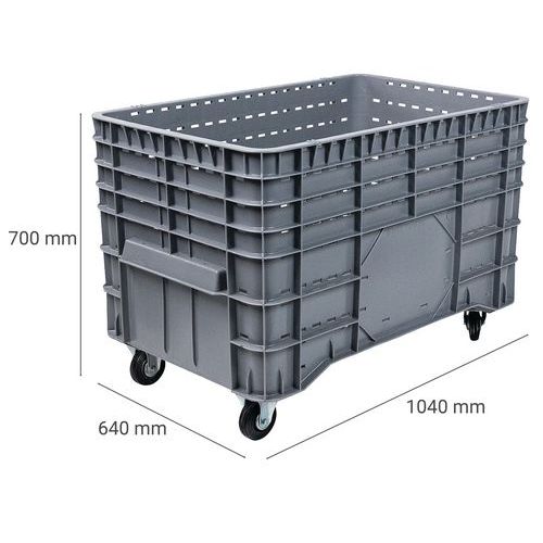 | Varunamn | Stapelbar pallbehållare, Volym: 300 L, Maximal last: 120 kg, Total höjd: 700 mm, Total bredd: 640 mm |