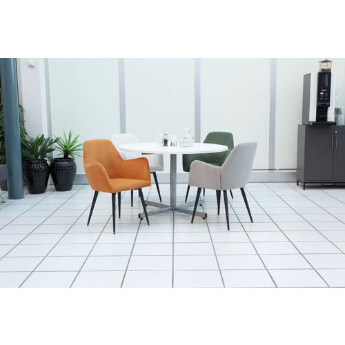 - Främst framtagen som matsatsstol, men dess stilrena utseende och bekväma utförande gör den lika trevlig i ett mötesrum eller som besöksstol.