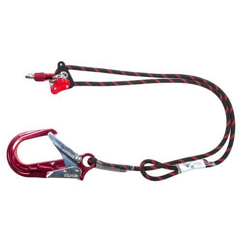 Vid ett eventuellt fall bromsar justeringsgreppet rörelsen i repet och ger en kontrollerad inbromsning.