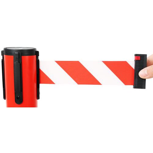 - Stolpe med randig stretchrem för att snabbt markera en tydlig barriär.
