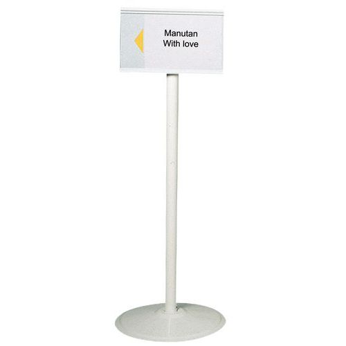 - Sätt in bladet med ditt meddelande i hållaren. 2 orienteringspilar: ange riktningen genom att flytta meddelandet sidledes. Metallstolpe för självhäftande skyltar. Proppfäste för uppsättning av informationsskyltar.