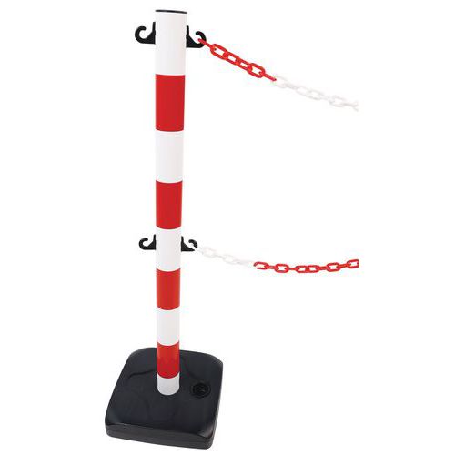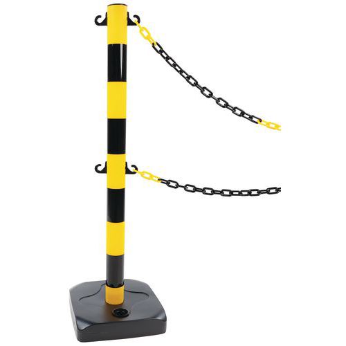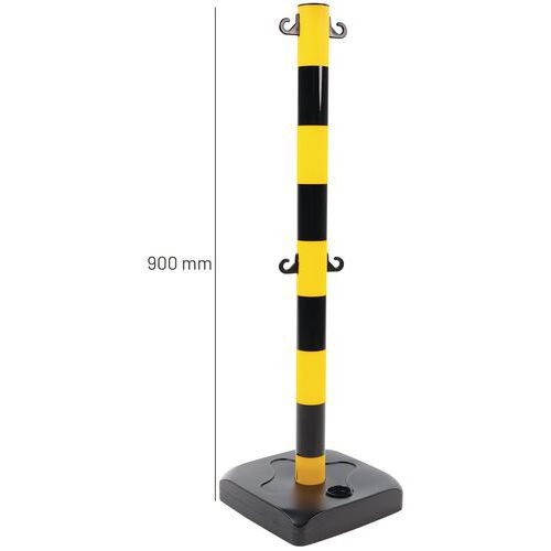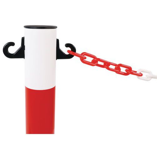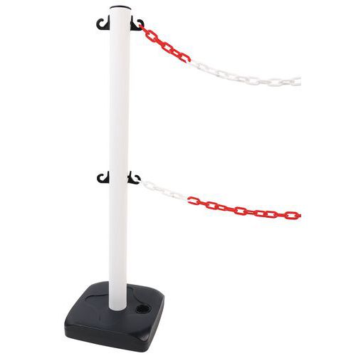 - Mycket robust kedjestolpe utrustad med fyra krokar på två nivåer för att fästa kedjorna.