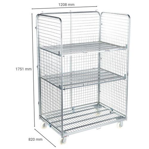 | Varunamn | Tresidig rullcontainer, Kapacitet: 600 kg, Total höjd: 1751 mm, Längd totalt: 1208 mm, Antal sidor: 3 |