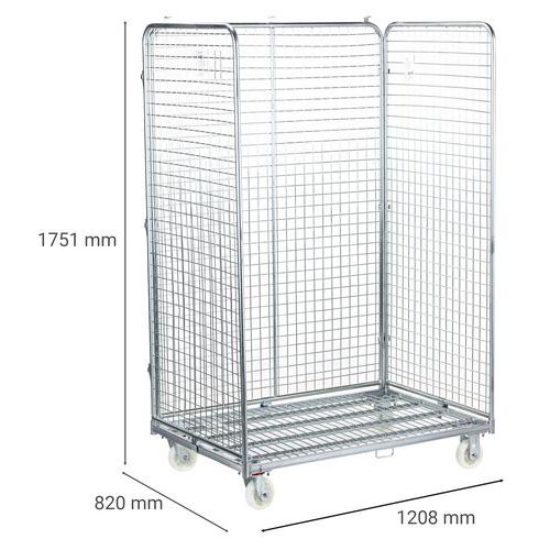 | Varunamn | Stor tresidig rullcontainer, Kapacitet: 600 kg, Total höjd: 1751 mm, Längd totalt: 1208 mm, Antal sidor: 3 |