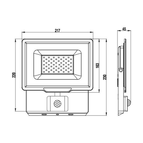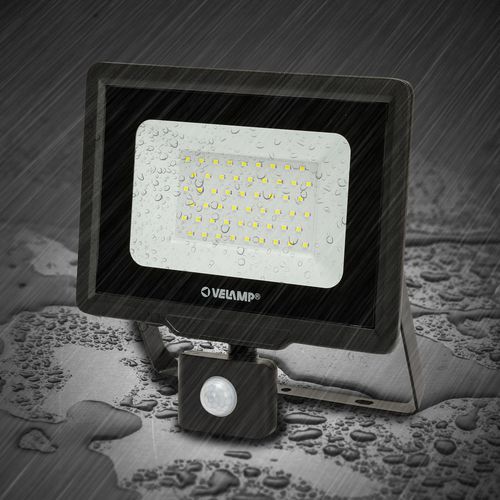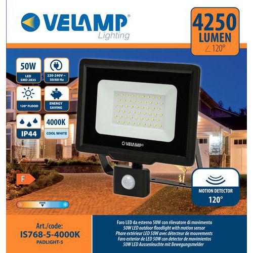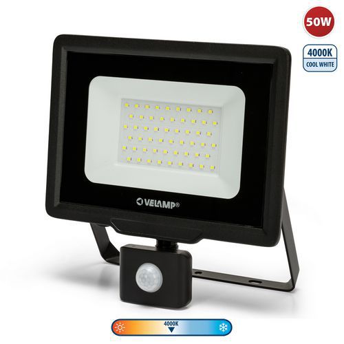 Strålkastare LED 50W med rörelsesensor, Ljusflöde: 4250 lm, Effekt: 50 W, IP-skydd: IP 65, Färg: Svart