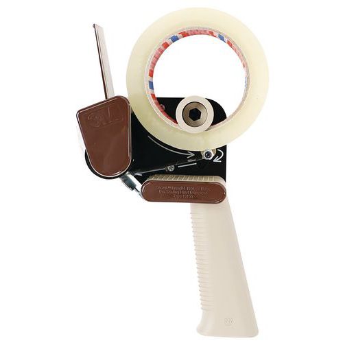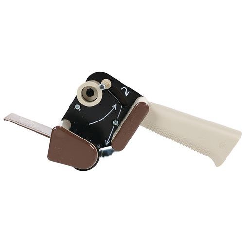 - Bandet hålls sträckt med justerbar broms. Ergonomisk rullhållare.