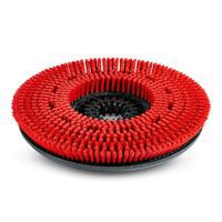 Borstrondell (medelhård, röd), 430 mm i diameter. Lämplig för normal användning och känsliga golv. Borst: polypropen, 0,6 mm tjocka, 40 mm långa.