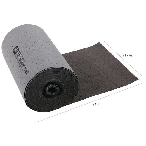 Mångsidig universal torkduk på rulle tillverkad i 100% polypropylen. Rullen är 24 m lång på 41 cm bredd och absorberar 34,8 liter. Duken är perforerad varje 25 cm och är lätt att vika. Levereras i en praktisk box med handtag och väger totalt 4,5 kg. Riv av lite av duken vid tillfälligt spill som behöver torkas upp snabbt. Den håller sig på plats och dess yta är tålig mot slitage. Torka snabbt upp smuts! Duken är starkare än vanliga torkdukar och varar därmed längre. Fungerar väldigt bra vid snabb rengöring av oljiga maskiner. Vik ihop duken till en tjock, smal socka och sug upp läckage under och bredvid dina maskiner.