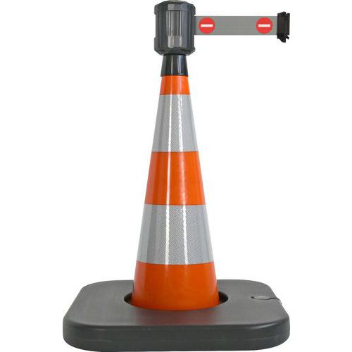 - Orange, fluorescerande kon med en bandkassett med ett utdragbart band (50 mm x 3 m) och en mottagare.